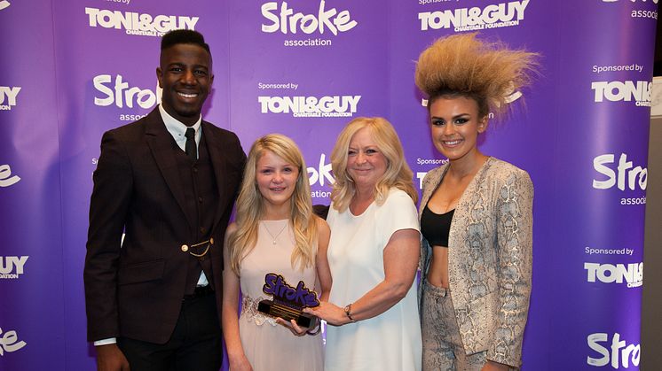 A 13 year-old from Stockton on Tees has won a national Life After Stroke Award. Emily Simpson was presented with the Children and Young People’s Courage Award by Jermaine Jackman and Tallia Storm at a star-studded ceremony at the Rosewood Hotel in London on 25 June 2015.