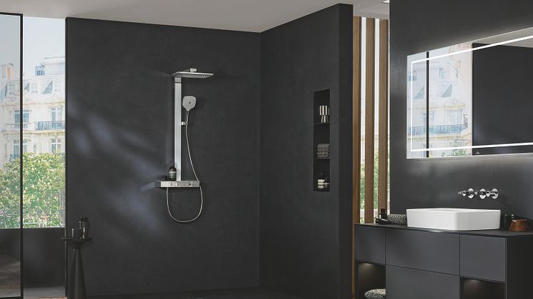 Available optionally in classic shiny Chrome and trendy dark Matt Black, the new Infinity Showers collection is a special highlight: in Chrome, it integrates harmoniously in any bathroom design, while Matt Black makes a confident and striking style statement in a modern bathroom.