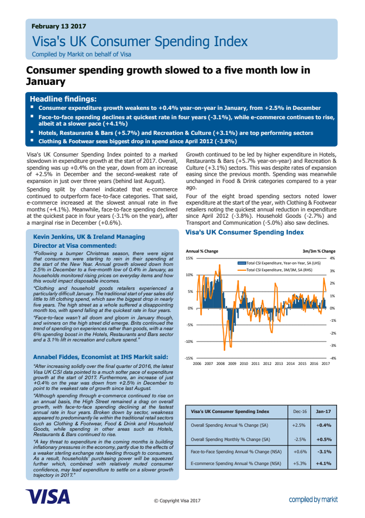 • Clothing & Footwear sees biggest drop in spend since April 2012 (-3.8%)