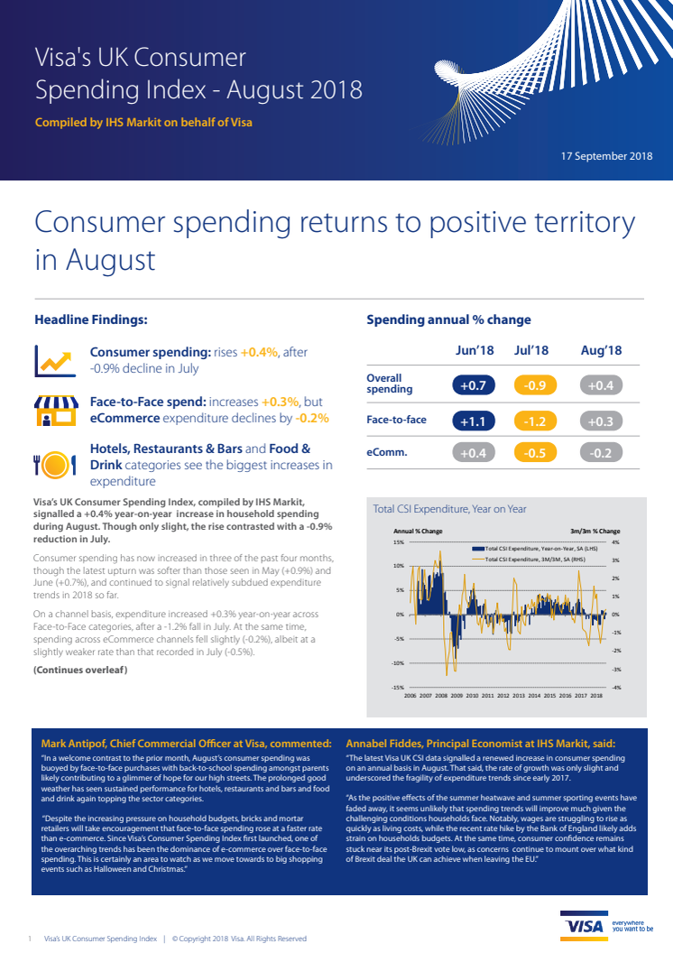 - Hotels, Restaurants & Bars and Food & Drink categories see the biggest increases in expenditure