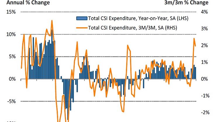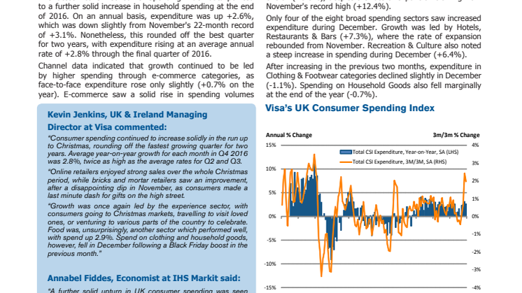 Consumer spending continued to increase solidly in the run up to Christmas, rounding off the fastest growing quarter for two years. Average year-on-year growth for each month in Q4 2016 was 2.8%, twice as high as the average rates for Q2 and Q3.