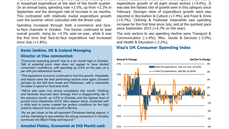 • Consumer spending growth reached six month high in October