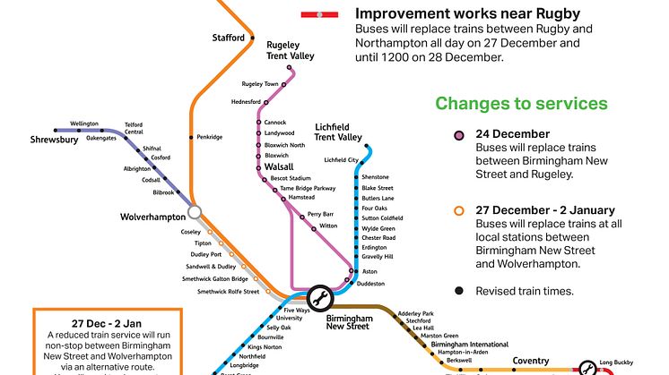Customers encouraged to check before they travel with reduced services on Birmingham's Cross City Line, to and from Worcester and Hereford, and between St Albans and Watford.