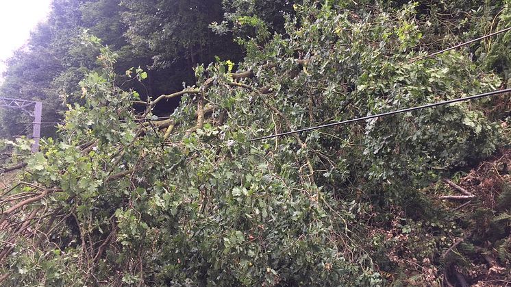 Trains on the Cross City line between Birmingham New Street and Redditch / Bromsgrove are expected to be disrupted until at least 1200 today (15 Aug). This is due to a number of fallen trees on the line near University and Five Ways stations and damage to the embankment.