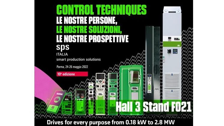 Control Techniques ad SPS Italia 24/26 Maggio 2022 Pad. 3 Stand F021