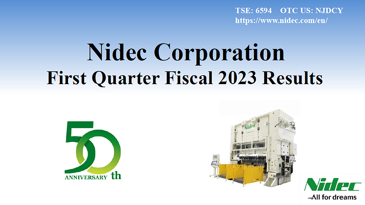 • Nidec Announces Financial Results for Fiscal First Quarter Ended June 30, 2023