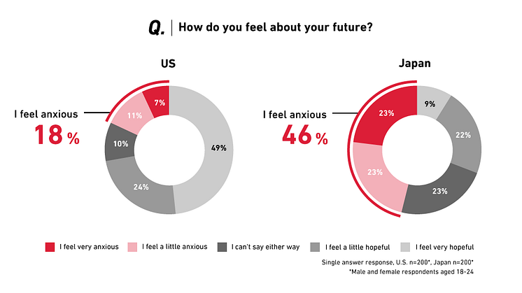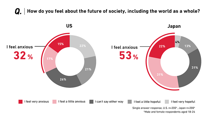 - In the U.S., less than a third of this age group feels anxious about their personal future and that of society, compared to approximately half in Japan.
