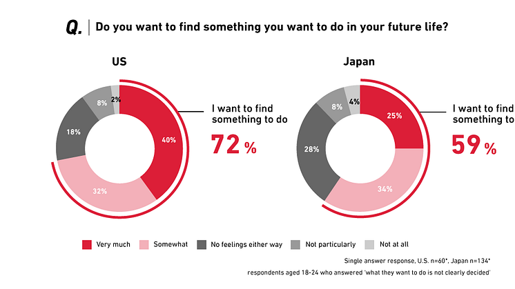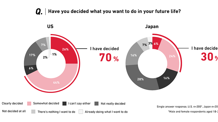 - While 70% of those aged 18-24 in the U.S. had a clear vision of their future aspirations, only 30% in Japan did, a significant difference. However, over half of respondents in both countries expressed the desire to discover what they want to do in the future.