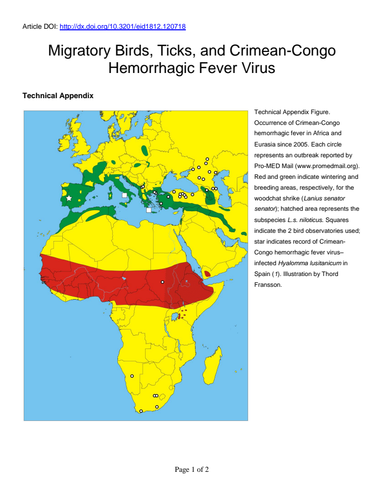 Occurrence of Crimean-Congo hemorrhagic fever in Africa and Eurasia since 2005.