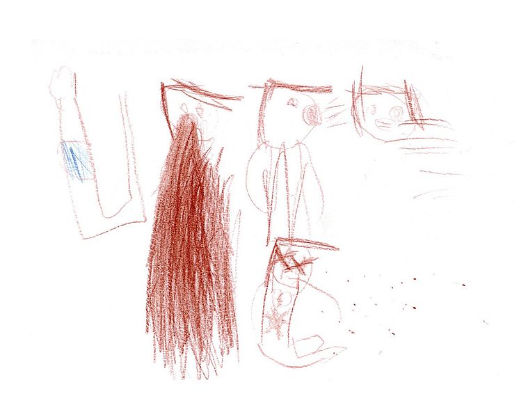 Figure 8 – Aged 6, Bromölla, 2020. “The Corona virus. You throw up, then cough and then you get better or die”. Children's drawing about COVID-19 pandemic.
