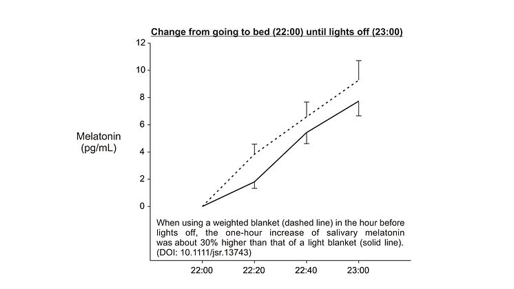 "Our study may offer a mechanism explaining why weighted blankets may exert some therapeutic benefits, such as improved sleep. However, our findings rely on a small sample and investigated only the acute effects of a weighted blanket. Thus, larger trials are needed, including an investigation of whether the observed effects of a weighted blanket on melatonin are sustained over longer periods," says senior author Christian Benedict, Associate Professor of Pharmacology at the Department of Pharmaceutical Biosciences at Uppsala University.