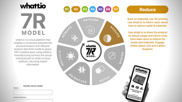 As designers, makers, and manufacturers, we need to find ways to reduce material usage, use less energy in production, transportation, and usage, and consistently seek ways to Rethink (the first R in the 7R model) our manufacturing and production of parts and components. Adopting a futuristic view of manufacturing can actually reduce the carbon footprint of a product from cradle to gate. Beyond the "gate" to grave, we must leverage product information to assist end-users in utilizing the product in ways that reduce its environmental impact.
