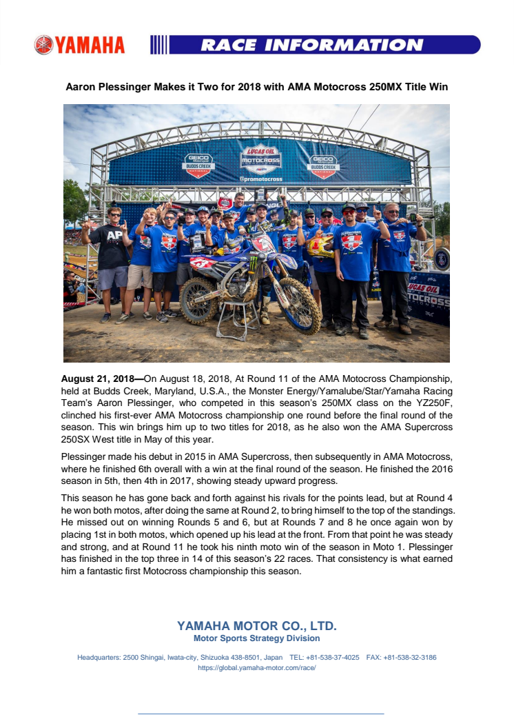 Aaron Plessinger Makes it Two for 2018 with AMA Motocross 250MX Title Win