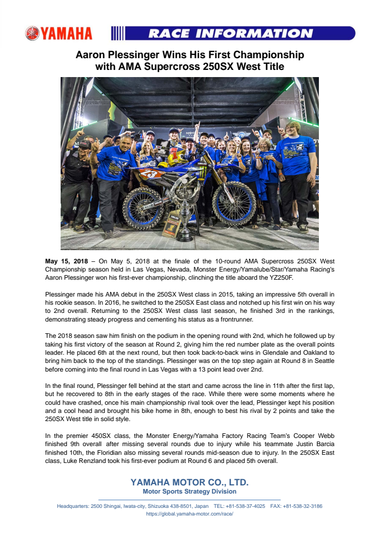 Aaron Plessinger Wins His First Championship with AMA Supercross 250SX West Title