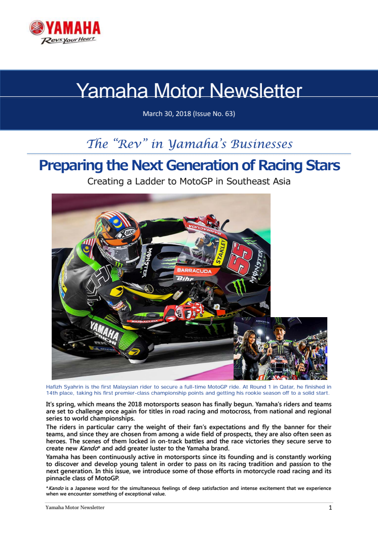 Preparing the Next Generation of Racing Stars Yamaha Motor Newsletter(Mar.30, 2018 No.63)