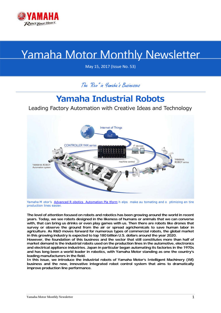 Yamaha Industrial Robots -Yamaha Motor Monthly Newsletter(May.15, 2017 No.53)-