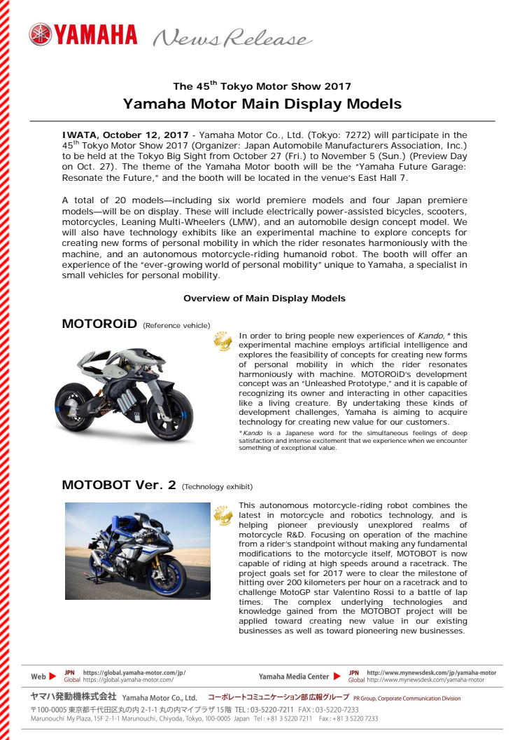 Yamaha Motor Main Display Models The 45th Tokyo Motor Show 2017