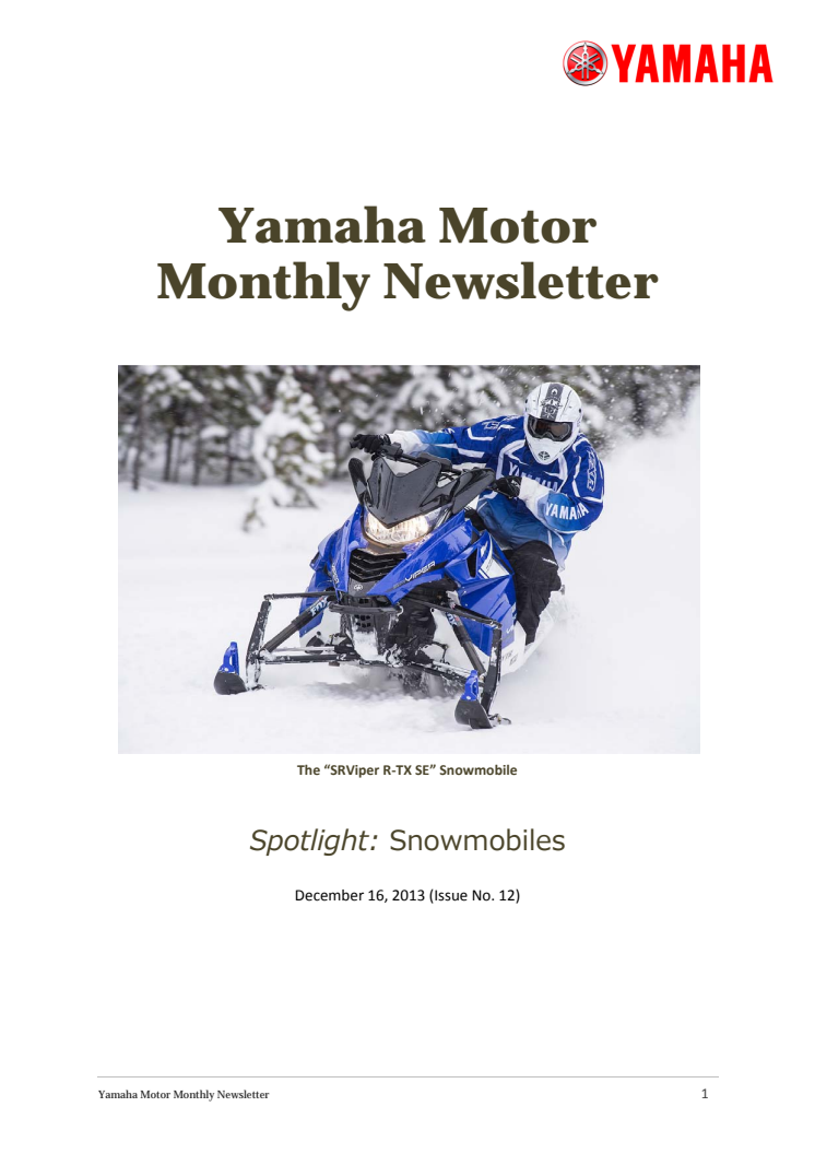 Yamaha Motor Monthly Newsletter No.12(Dec.2013) Snowmobiles