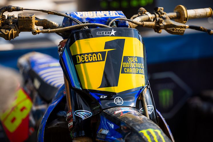 August 23, 2024—On Saturday, August 17, 2024, Monster Energy Yamaha Star Racing rider Haiden Deegan competed in Round 10 of the AMA Motocross Championship at Budds Creek in Mechanicsville, Maryland in the 250MX class, where he won the first moto and finished 10th in the second moto to take 3rd overall for the event, clinching the 2024 title aboard his YZ250F. It is his first ever AMA motocross title and Yamaha’s first AMA motocross title since Dylan Ferrandis’s win in 2020.