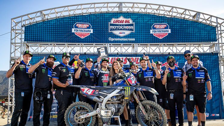 October 12, 2020—On October 10, 2020, at Round 9, the final round of the AMA Motocross Championship held at Fox Raceway in Pala, California, the Monster Energy/Star/Yamaha Racing team’s Dylan Ferrandis, who competed in this season’s 250MX class on the YZ250F, took 2nd/5th for 3rd overall in the event to win his first ever AMA Motocross championship title. It was his second title of the year after also lifting the AMA Supercross 250SX West crown.