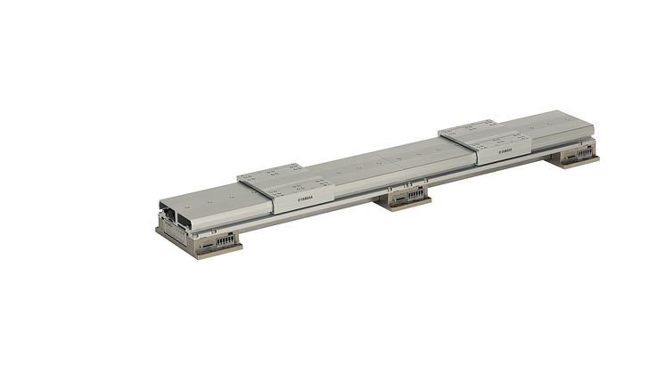 Its all-new structure complete with a newly-developed linear motor, sensor module, and built-in motor driver integrated into the body has almost halved both the module height and the pitch between sliders compared to existing models, as well as significantly improving the acceleration/deceleration speed and stoppage accuracy.