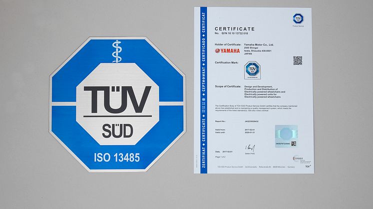 IWATA, March 1, 2017 - Yamaha Motor Co., Ltd. (Tokyo: 7272) announced today that the JW Business Division, which works with electric power units for wheelchairs and electric wheelchairs etc., has acquired certification for the international standard "ISO 13485: 2003*1"” for quality management systems in the medical equipment field.