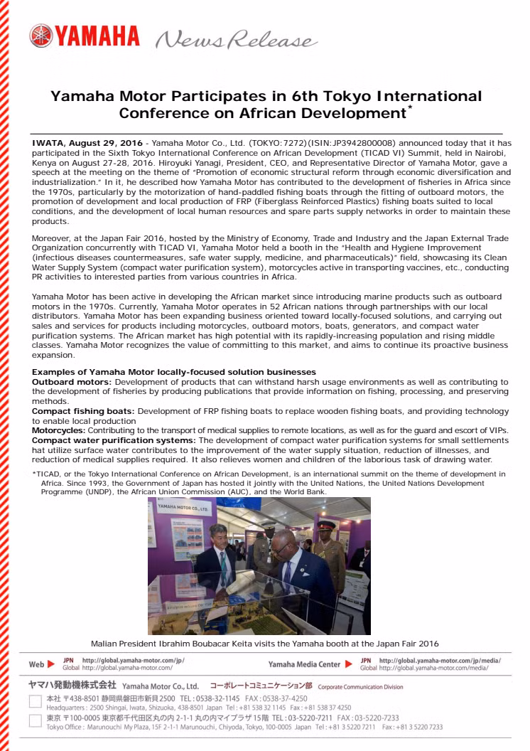 • Yamaha Motor Participates in 6th Tokyo International Conference on African Development*