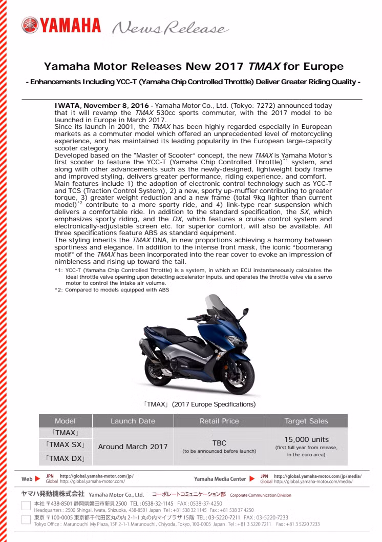 • Yamaha Motor Releases New 2017 TMAX for Europe