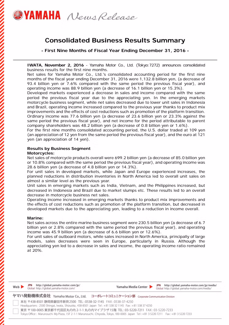 • Consolidated Business Results Summary - First Nine Months of Fiscal Year Ending December 31, 2016 -