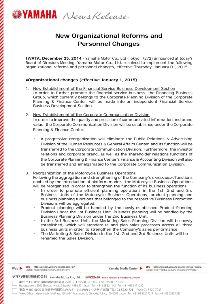 • Yamaha Motor Monthly Newsletter No.27 (Mar. 16 2015) The Yamaha Brand
