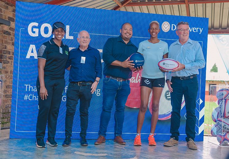 Johannesburg, 22 February 2024– Thembalethu Primary School in Soweto played host today to the official handover of 10,000 netballs and 5,000 rugby balls to underprivileged schools across South Africa. The donation comes from Discovery and its clients, who contributed either by donating their rewards through Vitality’s philanthropic crowdfunding platform “MoveToGive” or by tapping their Discovery Bank virtual cards around the 2023 Rugby World Cup. Discovery also donated a netball for every goal scored by our national side, the Spar Proteas during the Netball World Cup.