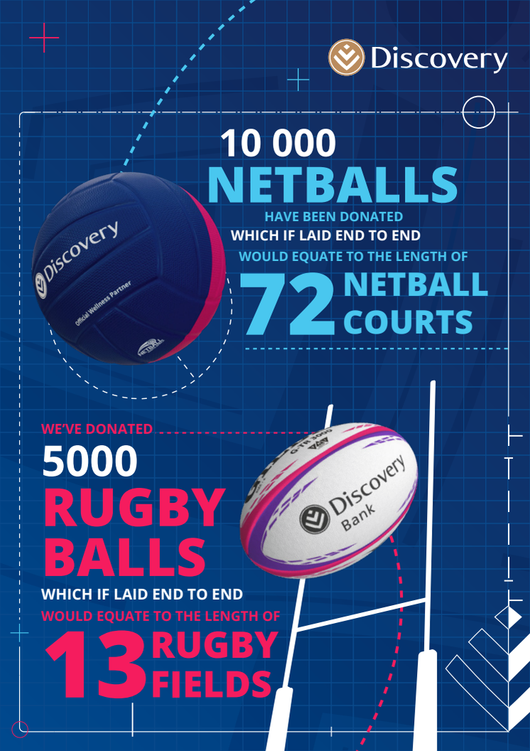 Firoze Bhorat, Discovery’s Chief Marketing Officer said, “Sport has the power to inspire young girls and boys to achieve their goals and dreams, and we’re excited to make this donation as part of our commitment to promote sports development and physical activity to build a healthier society. We also thank Discovery clients for making this donation possible through their incredible participation in the campaigns we ran over the Netball and Rugby World Cup tournaments last year.”