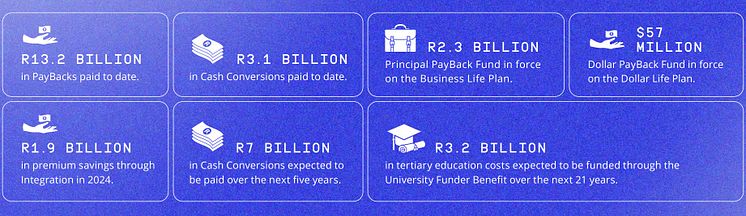 - Additional benefits: over R260 million for the Global Education Protector, Funeral policies and other benefits.