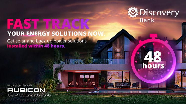 Johannesburg, 23 August 2023 – Discovery Bank, a pioneer in innovative financial solutions, today announced an enhancement to its energy solutions offering which will allow clients installation within 48 hours from payment receipt for solar and back-up power solutions. This move streamlines the process, ensuring customers can power their homes promptly and efficiently.