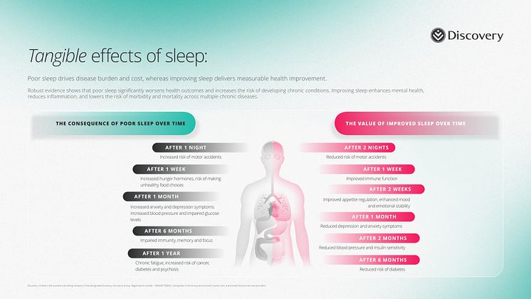 'The Sleep Factor' is one of the most comprehensive analyses of sleep health in the private sector and reveals that sleep has measurable impacts on longevity, mental health, chronic disease and road safety. The findings are both striking and actionable. Drawn from over 47 million sleep records and enriched with clinical and behavioural data, the report highlights Discovery’s findings as a whole and urges elevating sleep to the level of nutrition and exercise in public health strategies.